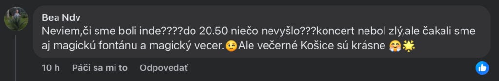 Sklamanie z celej akcie sa ukazuje aj v komentároch ľudí, ktorí čakali možno rovnako viac ako aj naša redakcia, no jednoznačne ohodnotili večerné Košice ako krásne miesto a stým nám neostáva nič iné, len súhlasiť.