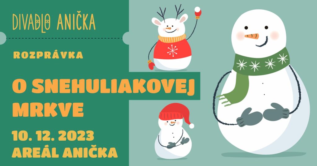 V Divadle Anička sa o 16:00 pripravuj zimný príbeh o neobyčajnom priateľstve. Malý hladný zajačik sa vydáva na dobrodružnú cestu zasneženou krajinou a stretáva zábavného a nesmrteľného snehuliaka, ktorý si privyrába ako živá socha. Táto originálna a dojemná rozprávka prinesie do vašich sŕdc teplé vianočné pocity.
