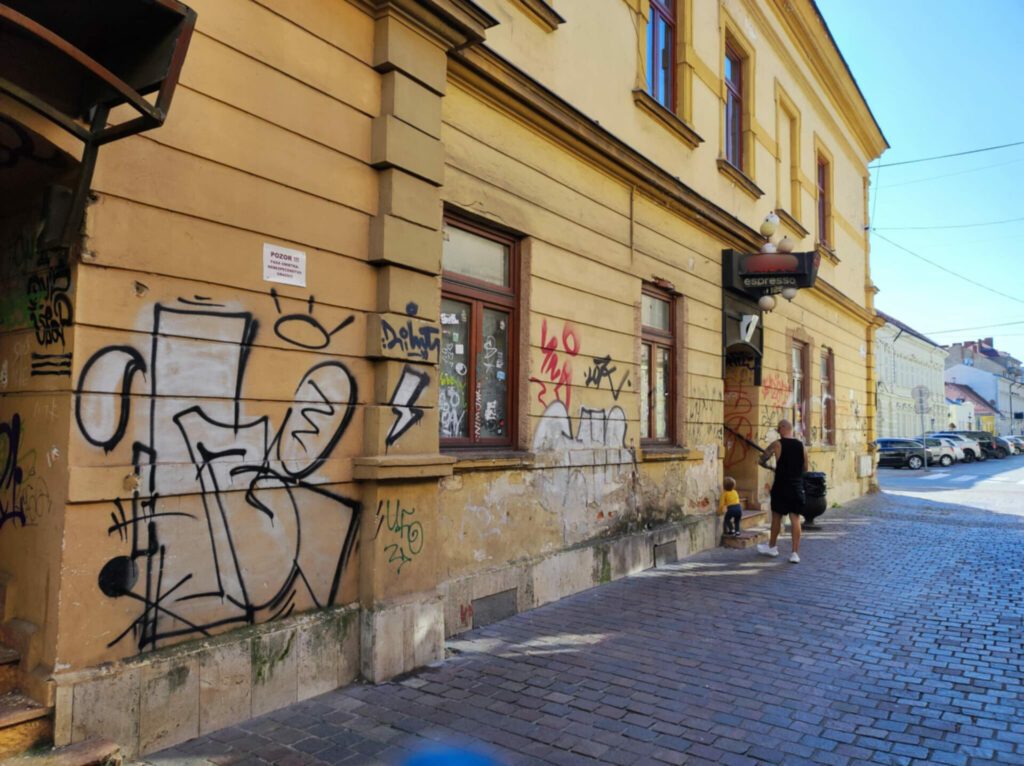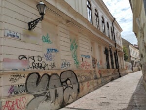Poukázali sme teda na budovu na Moyzesovej 44 roky pokreslenú grafitmi, ktorá je v ich správe. “Budovu na Moyzesovej ulici 44 v Košiciach spravuje od februára 2022 župná organizácia Správa majetku KSK. Prevzala ju od Konzervatória, Timonova 2, Košice, ako prebytočný nevyužívaný majetok. V súčasnosti je nevyužívaná a vyžaduje si celkovú rekonštrukciu, vrátane rekonštrukcie vonkajšej fasády. Vzhľadom na stav fasády, ako aj nutnosť jej celkovej rekonštrukcie sa v tejto chvíli odstránenie grafity nejaví ako priorita. Na ostatných budovách v historickom centre Košíc, ktoré má v správe KSK, župa v posledných rokoch neeviduje náklady na odstraňovanie graffiti,” vysvetľuje Strojná. O grafitoch teda v KSK vedia, ale ich riešenie nie je na programe.