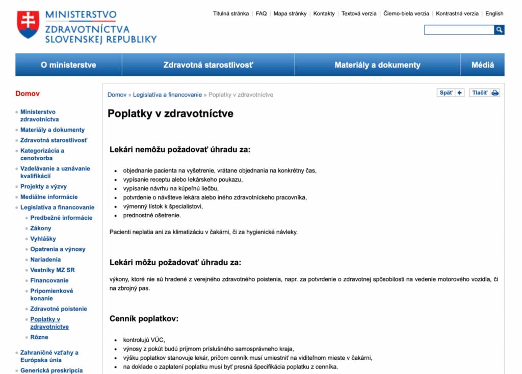 Všeobecná zdravotná poisťovňa nám na naše otázky odpísala, že poplatky v zdravotníctve sú zložitou témou a nedostali sme jednoznačné odpovede na to, či môže lekár vyžadovať platbu za založenie karty alebo objednanie. Hovorkyňa nás odkázala na stránku ministerstva, kde je jednoznačne uvedené, za čo lekár nesmie vyžadovať poplatok.