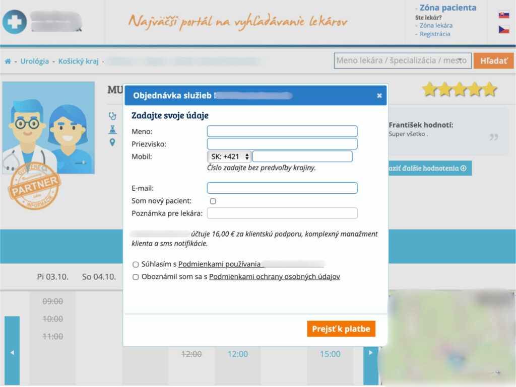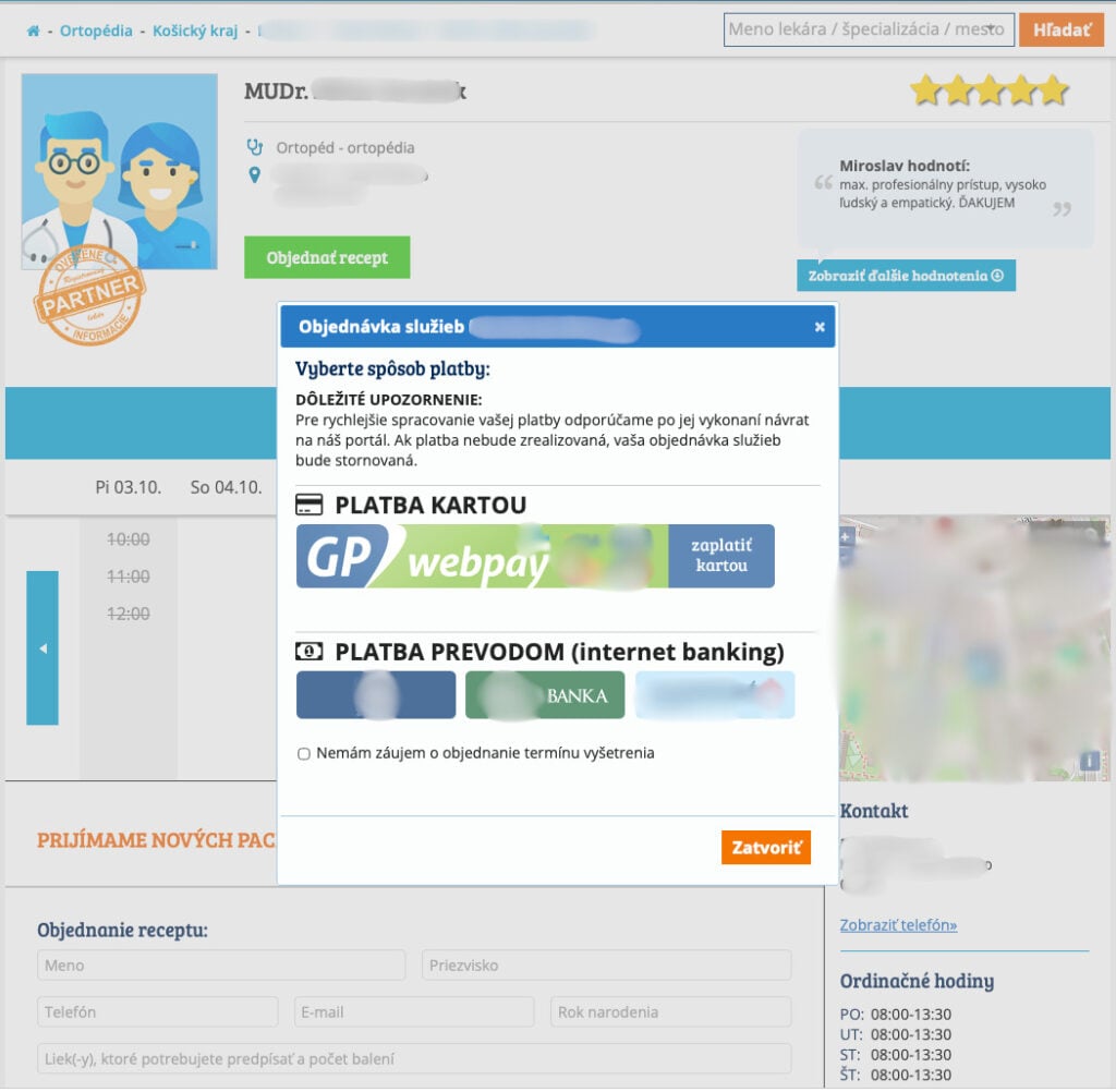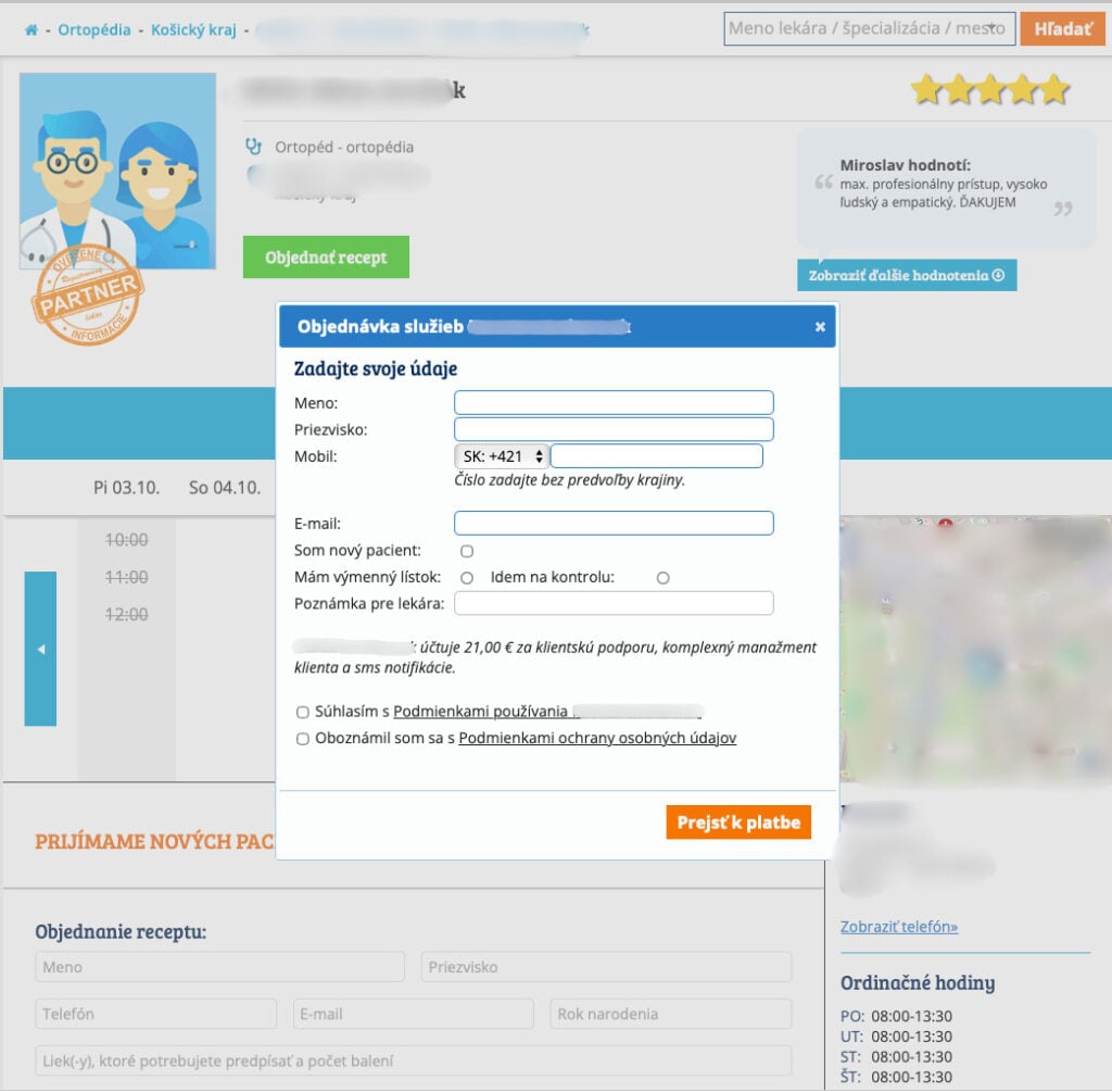 V minulosti sme kontaktovali špecialistu, ktorý nám vysvetlil, ako proces objednávania funguje, ale nechcel byt menovaný. Ak si pacient objedná termín cez nemenovanú webstránku a zaplatí, tak sa o peniaze delí lekár s týmto objednávacím portálom a obaja z toho odvádzajú daň. Uviedol, že cez webstránku vyberá poplatky, berie teda peniaze za službu. Webstránka nie je podmienkou na poskytnutie zdravotnej starostlivosti, ale lekár podmieňuje podanie zdravotnej starostlivosti objednaním sa cez online formulár.