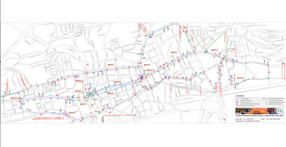 Premávka vedená cez Festivalové námestie do centra na Kuzmányho ulicu. Po Kuzmányho ulici až ku križovatke Štúrova – Moldavská – Žižkova.