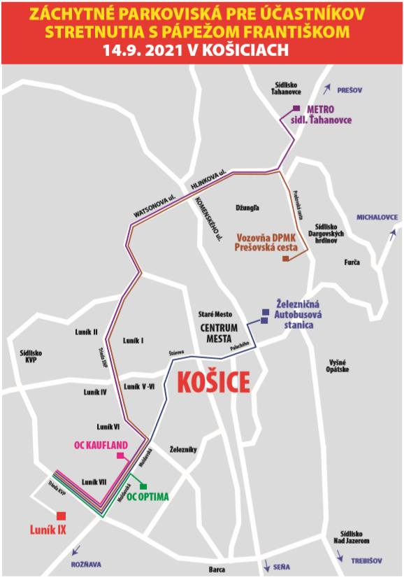 V súvislosti s návštevou Svätého Otca Františka v Slovenskej republike bude potrebné počítať v Košiciach s určitými dopravnými obmedzeniami: