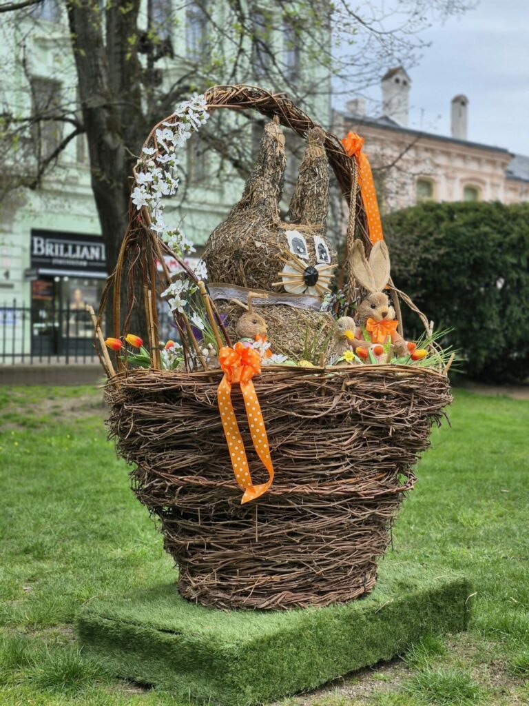 V Južnom parku osadili prútené veľkonočné vajíčko a košík vyrobené z prírodných materiálov, ozdobené motívmi súvisiacimi s Veľkou nocou. V parku pri fontáne znamení pribudli tri plastové prepletané veľkonočné vajíčka, ktoré potešia obyvateľov aj návštevníkov. Sviatočnú výzdobu doplní jarná výsadba kvetov, ktorá prispeje k oživeniu verejných priestranstiev.