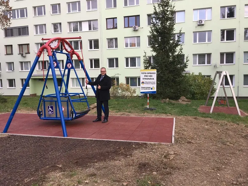 Novovybudovaný hojdací prvok určený pre deti na invalidnom vozíku