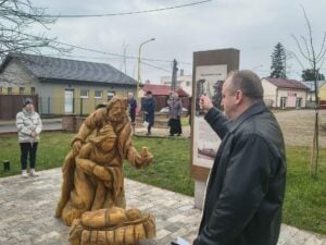Autorom tohto precízne spracovaného diela je talentovaný mladý rezbár Laci Tasky. Svojím prístupom dokázal do dreva pretaviť nielen remeselnú zručnosť a ambície, ale aj úctu k tradíciám, ktorú v dnešnej dobe citlivo vnímajú všetky generácie obyvateľov.