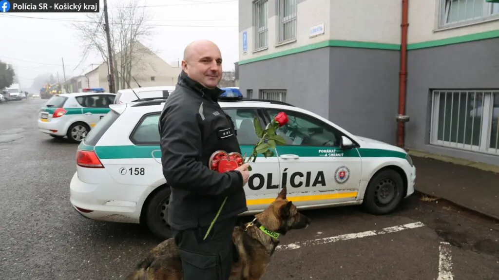 Najkrajšiu návštevu počas služby zažila Ivana z OO PZ Michalovce, za ktorou prišiel jej partner Pavol aj so svojim štvornohým „parťákom“. Spolu so svojim „kolegom“ svojej partnerke poďakoval za spoločné roky života a podaroval jej ružu s dezertom.