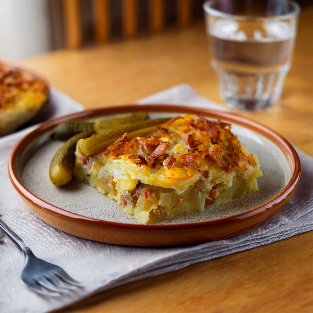 Francúzske zemiaky patria medzi tradičné slovenské jedlá, ktoré nikdy nesklamú. Chutná kombinácia zemiakov, vajec, údenej klobásy a syra preliata smotanou vytvára sýte a voňavé jedlo, ideálne na rodinný obed či večeru.